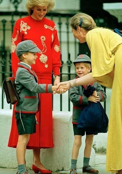 1989年9月11日,英国诺丁山,威廉王子与韦瑟比公学的女校长握手,当天是哈里王子第一天上学,当时他才四岁。两位王子当年是不是萌萌哒?不过,看到戴安娜王妃,忍不住一声叹息……快来看看各国王室萌娃开学都啥样吧!